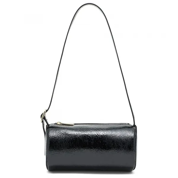 나파 가죽 효과의 인조 가죽 소재로 가방 끝부분에 대비색상의 상감 로고로 장식했습니다.