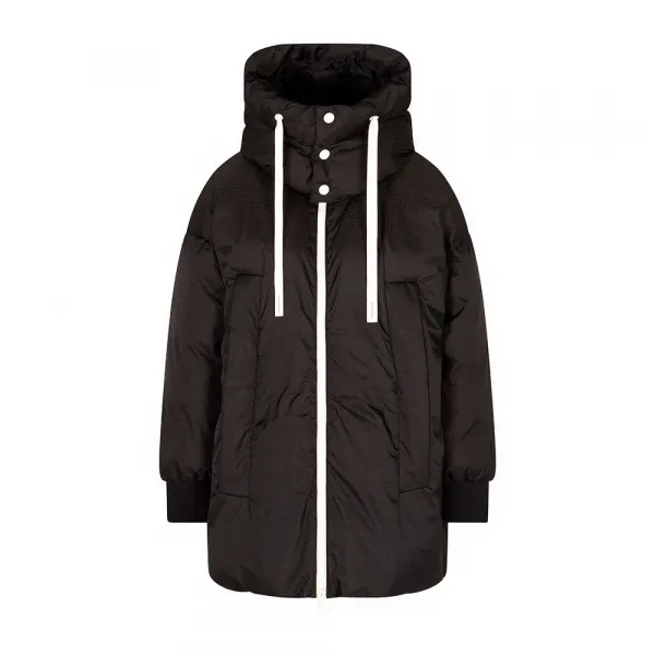 대비되는 색상의 더블 슬라이더 풀 지퍼 및 내부 버튼이 있는 전면 수직 포켓.