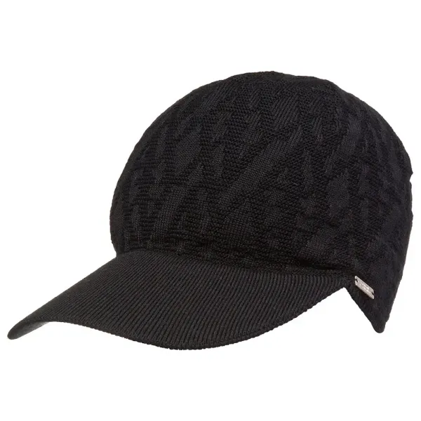 올오버 로고가 있는 니트 버진 울 아크릴 베이스볼 모자.