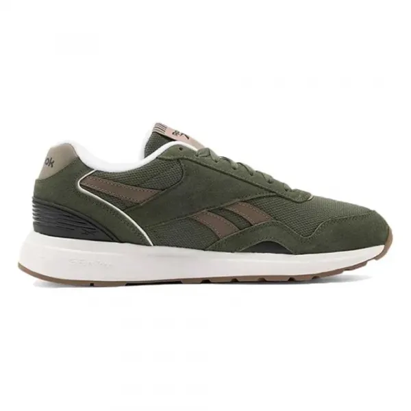 리복 GL 1100 신발은 스웨이드와 합성 오버레이가 특징인 메쉬 갑피로 과거를 회상하게 합니다.