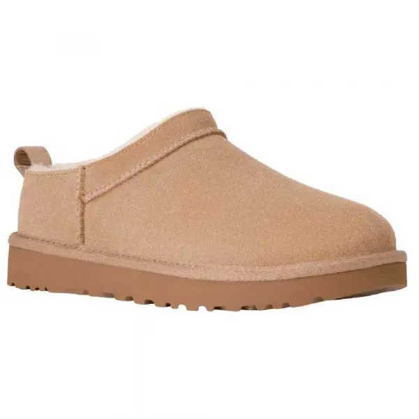 특징: - 스웨이드 또는 발수 처리된 스웨이드 또는 방수 스웨이드 갑피 - 뒷면 풀 탭 - 사탕수수 EVA 밑창 - 100% 재활용 폴리에스터 섬유로 만든 직물 바인딩 - 안창에 UGG® 로고가 있는 직조 라벨, UGG® 로고가 엠보싱된 가죽 뒤꿈치 라벨 사양: - 10mm 양가죽 샤프트 안감 - 17mm 양가죽 뱀프 안감 - 17mm 양가죽 안창