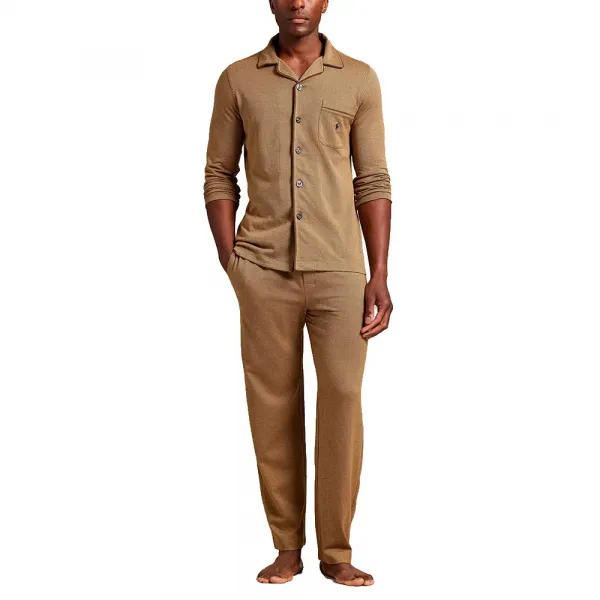 --- 기술 사양: 제품 코드: 714954321 성별: 남성 카테고리: 의류 하위 카테고리: 파자마 주 소재: 면 핏: 클래식 핏 소매 스타일: 긴소매 바지 길이: 긴바지 상의 스타일: 노치 라펠의 단추 앞면 셔츠 상의 포켓: 왼쪽 가슴 패치 포켓 바지 허리: 조절 가능한 드로스트링이 있는 탄성 허리 밴드 시그니처 디테일: 가슴 포켓의 자수 폴로 포니