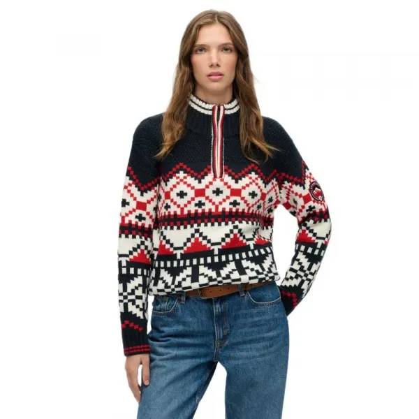 - 지퍼 잠금 방식의 하이 칼라와 골지 트리밍.