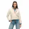 하이 칼라의 하프 지퍼 디자인.