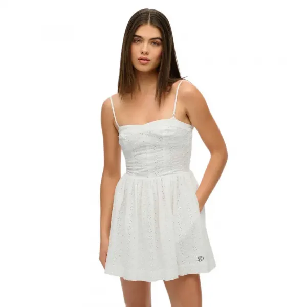브로데리 캐미 미니 드레스는 당신의 옷장에 추가할 수 있는 매우 여성스러운 옵션입니다.