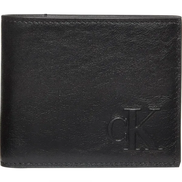 Calvin Klein 블랙 남성용 지갑, 접이식 잠금 및 CK 로고 디테일.