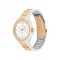 38mm 스테인리스 스틸 케이스, 파우더 로즈 골드 이온 도금, 크리스탈이 세팅된 바 마커가 있는 흰색 다이얼, 투톤 스테인리스 스틸 링크 브레이슬릿.