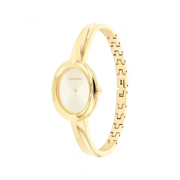 26mm 스테인리스 스틸 케이스, 옐로우 골드 이온 도금, 마커 없는 골드 다이얼, 옐로우 골드 이온 도금 링크의 뱅글 스타일 브레이슬릿.