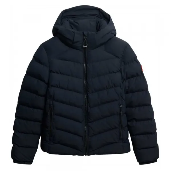 소매와 지퍼 풀에 Superdry 시그니처 브랜딩으로 마감된 후드 후지 푸퍼 재킷은 고품질 장인 정신과 지속적인 스타일의 증거입니다.