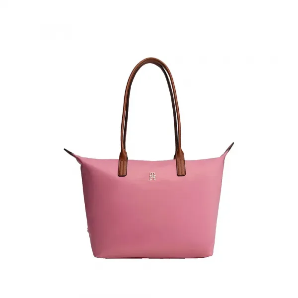 브라운 핸들이 달린 이 블랙 포페트 토트는 골드 장식과 깔끔한 라인이 특징이며, 일상적인 세련미를 위한 완벽한 선택입니다.