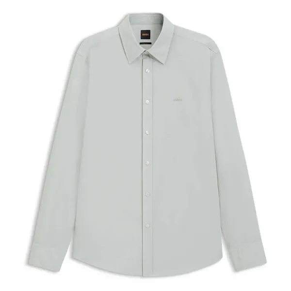 가슴 부분 보스 자수, 원단보다 약간 더 어두운 색상.