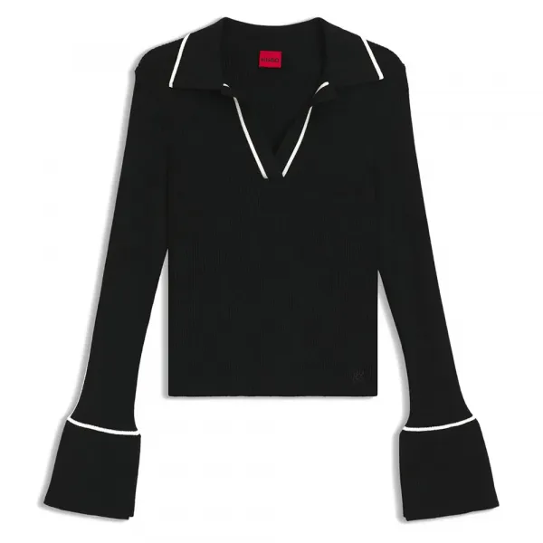 특징: - 슬림핏 - 긴 소매 사양: - 소재: 비스코스 50%, 폴리에스터 27%, 폴리아미드 23% (재활용) 관리: - 손세탁만 가능 - 표백 금지 - 건조기 사용 금지 - 낮은 온도로 다림질 - 화학 드라이클리닝 가능