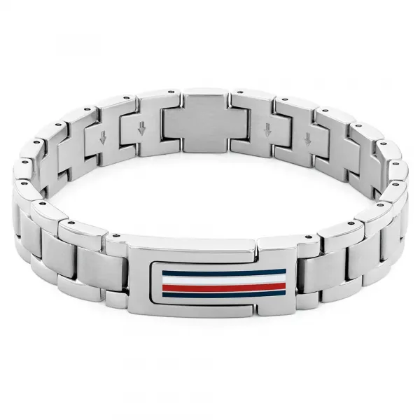 기술 사양: 모델 번호: 2790596 카테고리: 액세서리 하위 카테고리: 주얼리 소재: 스테인리스 스틸 잠금장치 유형: 접이식 잠금장치 디테일: 삽입된 에나멜 Tommy Hilfiger 브랜드 플래그 마감: 세련된 실버 톤 , 성인, 팔찌, 스테인리스 스틸