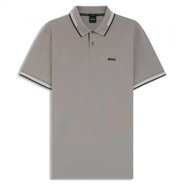 칼라의 스포티한 스트라이프와 칼라 아래 로고 브랜딩은 역동적인 느낌을 더하며, 왼쪽 가슴의 대비되는 보스 로고는 아이코닉한 세련미를 선사합니다.