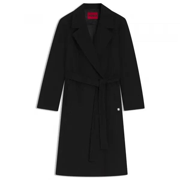 특징:- 오버사이즈 라펠- 울 혼방- 스택 로고 장식- 레귤러 핏- 노치 라펠- 여밈 방식: 벨트 여밈- 버튼 수: 2개- 상단 포켓: 싱글 웰트 포켓- 커프스 없음- 벤트 없음- 전체 안감- 스탠다드 길이사양:- 소재: 90% 폴리에스터, 10% 울, 안감: 55% 폴리에스터, 45% 비스코스, 소매 안감: 55% 폴리에스터, 45% 비스코스, 포켓 안감: 100% 면관리:- 세탁 금지- 표백 금지- 회전식 건조 금지- 저온 다림질- 약한 드라이 크리닝 (P)