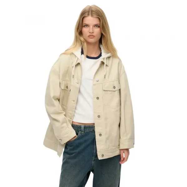 - 조절 가능한 드로우스트링과 버튼으로 잠그는 후드.