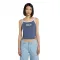 라운드 네크라인과 암홀 주변의 대비 색상 리브 엣지는 레트로하고 스포티한 느낌을 더해 탑을 완벽하게 프레임합니다.