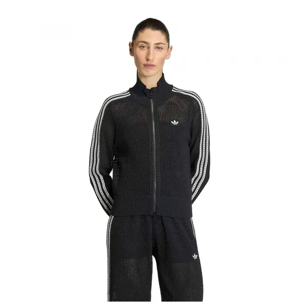 편안함과 스타일을 위한 니트 원단의 풀집 트랙탑입니다.