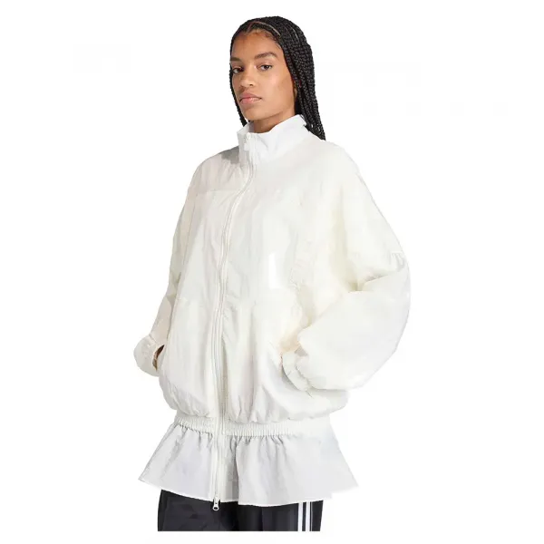 스타일리시한 편안함을 위한 하이넥과 풀 집업 클로저가 있는 오버사이즈 트랙 탑.