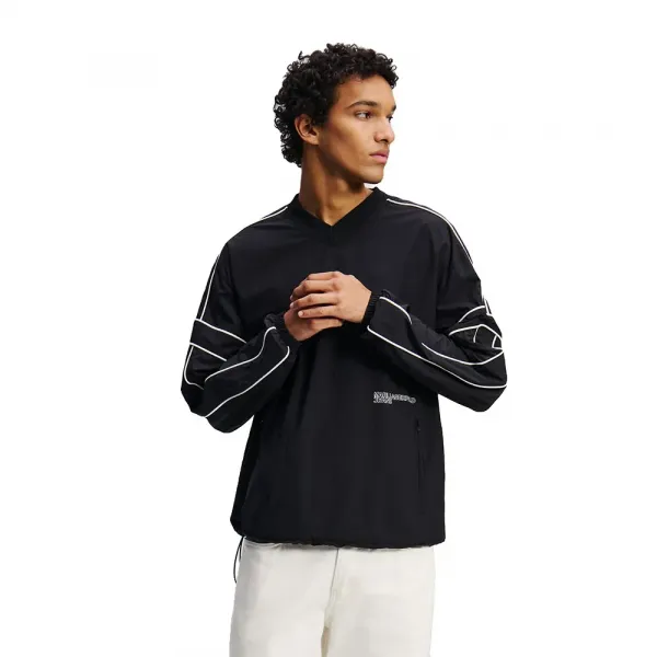 경량 퍼포먼스 원단과 돋보이는 V넥을 결합하여 캐주얼하고 활동적인 날에 다재다능한 스타일을 제공하는 쉘 수트 상의입니다.