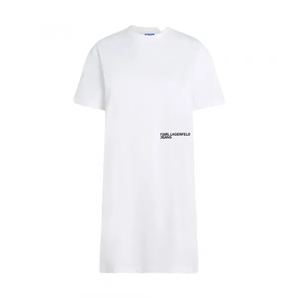 기술 사양: 모델: A4W13054 컬렉션: 칼 라거펠트 진스 제품 유형: 반팔 숏 드레스 소재: 면 네크라인: 라운드 넥 소매: 반팔 길이: 짧음 주요 특징: 칼 라거펠트 인용문 그래픽 스탬프 성별: 여성 클래식한 크루넥과 반팔 디자인의 오가닉 코튼 티셔츠 드레스입니다 뒷면에는 칼 라거펠트의 대담한 문구가, 허리에는 대비되는 로고가 있습니다.