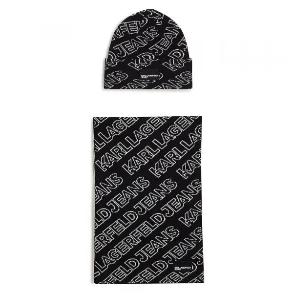 이 필수 비니는 KARL LAGERFELD JEANS 컬렉션의 시그니처 요소인 눈에 띄는 전체 모노그램 패턴이 특징입니다.