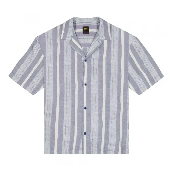 우아한 아카데미 블루 색상의 린넨의 가벼움과 비스코스의 비단처럼 부드러운 질감을 결합한 섬세한 스트라이프 원단으로 제작되었습니다.