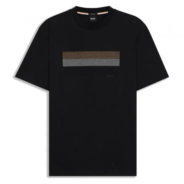이 레귤러 핏 BOSS Menswear 티셔츠의 창의적인 스트라이프 아트로 편안한 캐주얼 룩을 연출해보세요.
