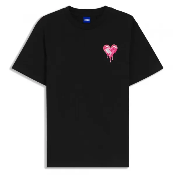 통기성이 좋은 면으로 제작된 이 HUGO 여성복 티셔츠는 Happy HUGO가 담긴 왜곡된 하트 아트워크가 특징입니다.
