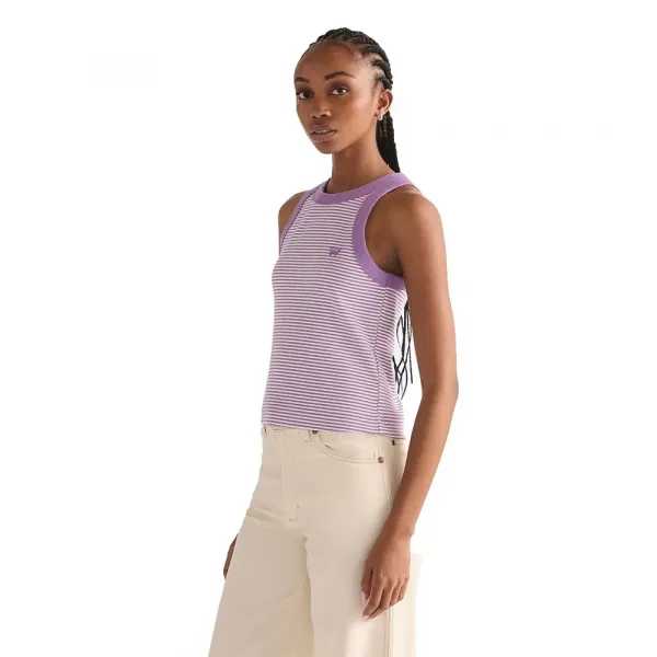 이 퍼플 색상의 립 Ringer 탱크 탑은 레트로에서 영감을 받은 매력을 당신의 룩에 더해주는 고급스러운 기본 아이템입니다.