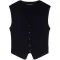 톤온톤의 고무 버튼 5개로 섬세하게 디자인된 시크한 V넥 슬리브리스 카디건입니다.