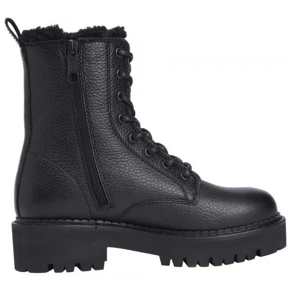 기술 사양: 카테고리: 신발 하위 카테고리: 부츠 및 부티 성별: 여성 갑피 소재: 가죽 스타일: 로우컷, 레이스업 굽 유형: 청키 플랫폼 잠금 방식: 금속 아일렛 레이스업 밑창: 고접지 고무 청키한 밑창, 금속 아일렛, 힐 부분의 타미 진스 로고 디테일이 특징인 100% 가죽 소재의 블랙 여성용 레이스업 부츠.