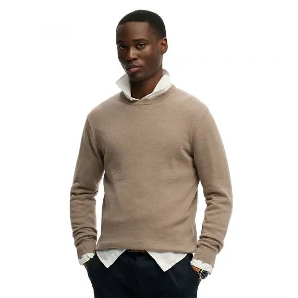 골지 트리밍 크루넥 라인과 가슴 부분의 은은한 자수 로고가 특징입니다.