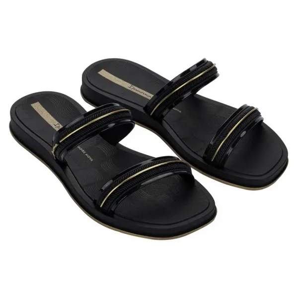 앞쪽 스트랩은 서로 겹쳐진 다른 모양과 볼륨의 밴드로 역동적이고 현대적인 느낌을 연출합니다.