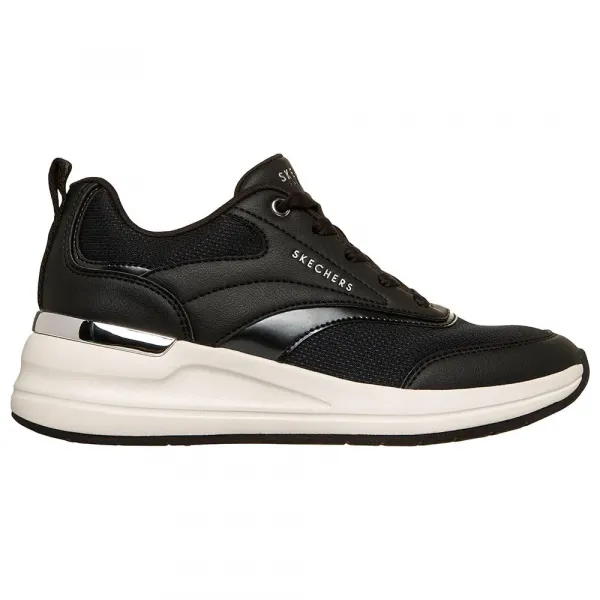 이 Wedge Fit® 패션 스니커즈는 메탈릭 트림과 힐 클립이 있는 레이스업 듀라 레더 및 메시 갑피와 Skechers Air-Cooled Memory Foam® 인솔을 특징으로 합니다.