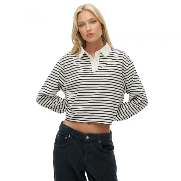 트렌디한 오버사이즈 핏과 클래식한 럭비 탑 실루엣으로 제작되어 일상적인 스타일링에 이상적입니다.