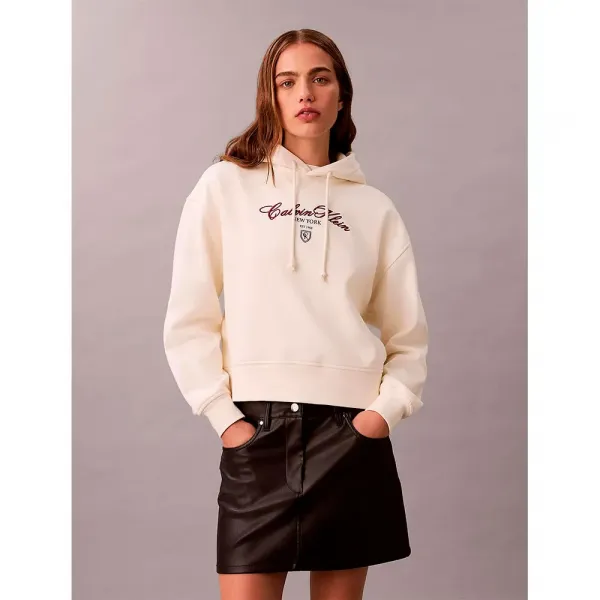 여성용 캘빈클라인 엄선된 옷장을 위한 세련된 클래식 시그니처 실루엣의 미니멀리스트 필수품 특징 - 긴 소매, 드로스트링 후드 - 골지 트리밍 - 캘빈클라인 로고 그래픽 형태 및 핏 - 릴랙스드 핏 소재 및 관리 면 86%, 폴리에스터 14% 기계 세탁 원산지: 인도 소재: 86% BCI(Better Cotton Initiative) 코튼