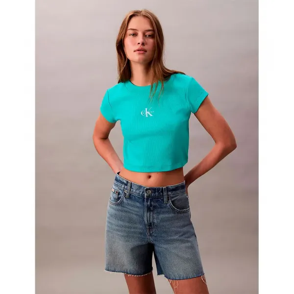 여성용 캘빈클라인 엄선된 옷장을 위한 세련된 클래식 시그니처 실루엣의 미니멀리스트 필수품 특징 - 크루넥 - 모노로고 그래픽 형태 및 핏 - 슬림 핏 - 짧은 소매 - 크롭 기장 소재 및 관리 면 95%, 엘라스테인 5% 기계 세탁 원산지: 베트남 소재: 면 95%, 엘라스테인 5%