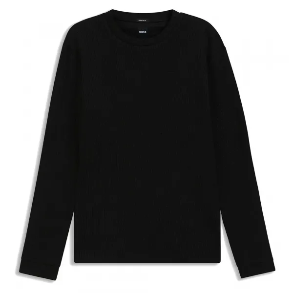 클래식한 크루넥과 은은한 리브 질감이 특징입니다.
