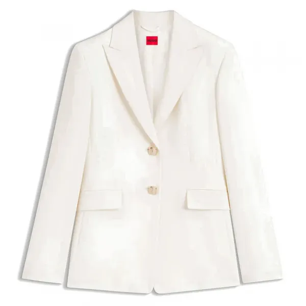 특징: - 레귤러 핏 - 피크 라펠 - 여밈: 버튼 클로저 - 단추 개수: 2개 - 상단 포켓: 플랩 포켓 - 커프스 없음 - 벤트 없음 - 전체 안감 사양: - 소재: 폴리에스터 61%, 비스코스 33%, 엘라스테인 6%, 안감: 폴리에스터 55%, 비스코스 45%, 소매 안감: 폴리에스터 100% 관리: - 세탁 불가 - 표백 불가 - 건조기 사용 불가 - 낮은 온도로 다림질 - 약한 화학 건조 세탁 가능