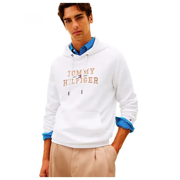 기술 사양: * 제품 코드: MW0MW42528 * 브랜드: TOMMY HILFIGER * 성별: 남성 * 카테고리: 의류 * 하위 카테고리: 스웨트셔츠 * 유형: 풀오버 후드 * 속성: 남성, 후드 포함, 지퍼 없음 * 네크라인: 조절 가능한 드로스트링이 있는 후드 * 여밈: 풀오버 (지퍼 없음) * 커프스 및 밑단: 립 니트 * 브랜딩: 가슴에 스택 TOMMY HILFIGER 로고, 소매에 플래그 자수 * 구성: 72% 지속 가능한 면