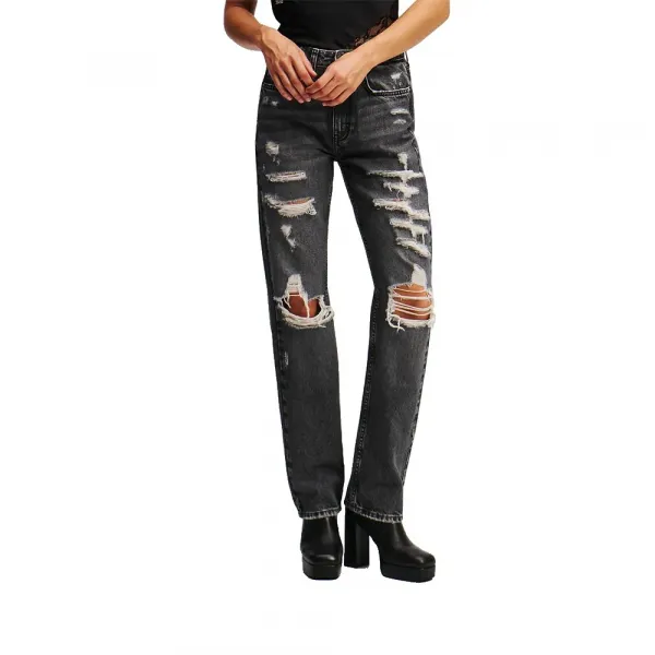 하이라이즈 스트레이트 진은 찢어진 디테일과 자연스럽게 사용된 워싱으로 자신감 넘치고 스트릿 감성의 애티튜드를 선사합니다.
