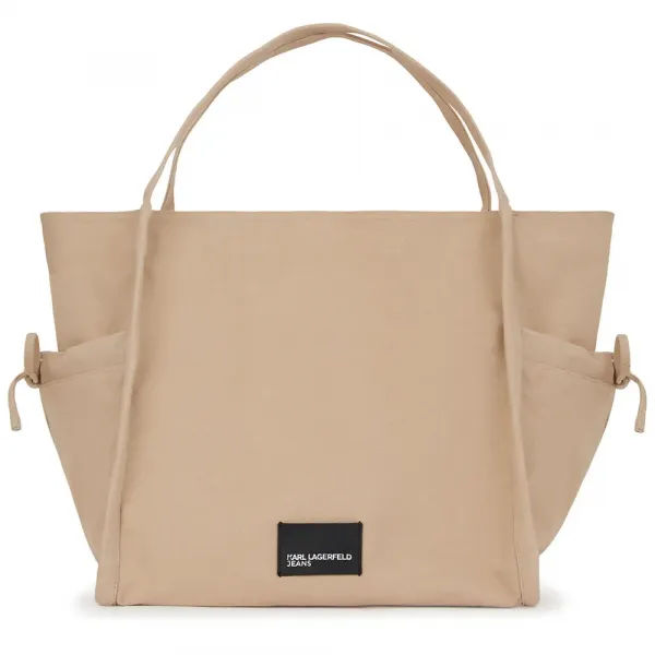 은은한 KARL LAGERFELD JEANS 로고 패치가 시그니처의 세련됨으로 룩을 완성합니다