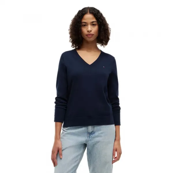기술 사양: * 제품명: 토미 힐피거 V넥 스웨터 * 스타일 코드: WW0WW40098 * 성별: 여성 * 카테고리: 의류 * 하위 카테고리: 스웨터 * 소재: 100% 유기농 코튼 * 네크라인: V넥 * 클로저: 풀오버 스타일 (지퍼 없음)