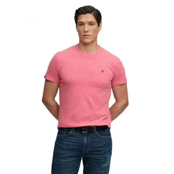 골지 크루 넥라인과 짧은 소매.