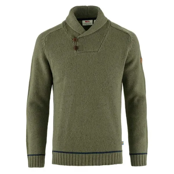 특징: - 클래식 숄 칼라가 있는 레귤러 핏 램스울 혼방 스웨터.