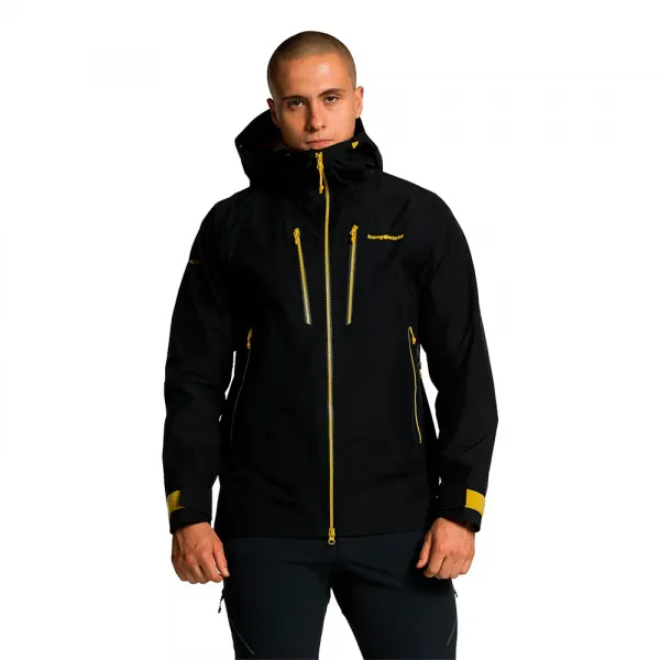 후드, 듀얼 얼굴 및 부피 드로코드, 방수 지퍼, 겨드랑이 환기, 신축성 밑단, 벨크로 조절식 커프스, 지퍼 포켓이 있는 고어텍스 3L 재킷.