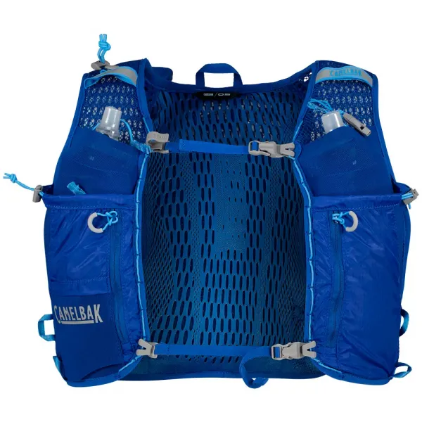 두 개의 500ml Quick Stow™ 플라스크가 포함되어 총 1L의 즉각적인 수분을 제공하며, 쉽게 마실 수 있도록 전면 포켓에 편리하게 배치되어 있습니다.