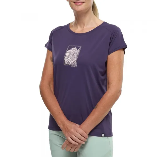느슨하고 여성스러운 컷은 이상적인 핏을 위해 슬릿이 있는 중앙 등솔선이 특징이며, 가슴의 산 그래픽이 스타일을 더합니다.
