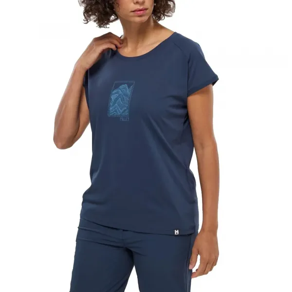 느슨하고 여성스러운 컷은 슬릿이 있는 중앙 뒷면 솔기가 이상적인 핏을 제공하며, 가슴의 산 그래픽이 스타일에 멋을 더합니다.